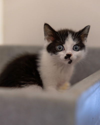 Little Atlas has had a tougher start to life than any kitten should. He arrived in our care alongside his siblings, Hiccup and Toothless, and although he has shown great resilience, he also carries a gentle, sensitive soul. After losing both of his siblings unexpectedly, Atlas has continued to grow and adapt and has taken everything in at his own pace.