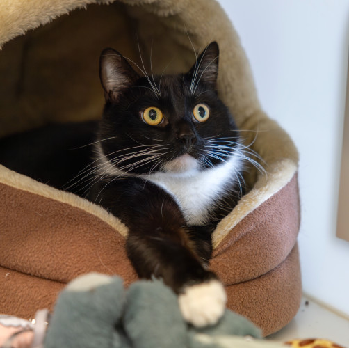 Oscar isn’t ready for cuddles or close contact just yet he prefers a hands-off approach while he gets comfortable. Because of this, he’s best suited to a quiet, adult-only home where he can be the only pet. His ideal adopter will have some experience with cats who can be a little wary or temperamental. He may not want to be touched, but he loves interactive toys and tasty snacks perfect ways to connect while still respecting his boundaries.