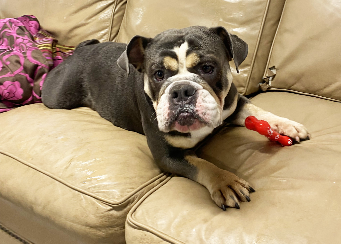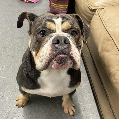 Meet Lilly, our stunning English Bulldog who is sure to steal your heart! This lovely girl came to us as a stray, so we don’t know much about her past, but what we've discovered since she arrived has been truly heartwarming. Lilly is overflowing with love and affection, and she has a wonderful way of charming everyone she meets. She's the kind of dog that makes people fall head over heels for her.