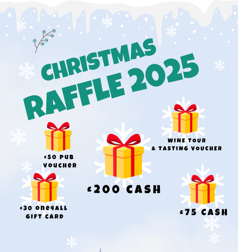 Tickets are only £1 each! Tickets are available now and will be sold until the raffle draw on Monday 15th December 2025. Winners will be contacted with details of their prize!