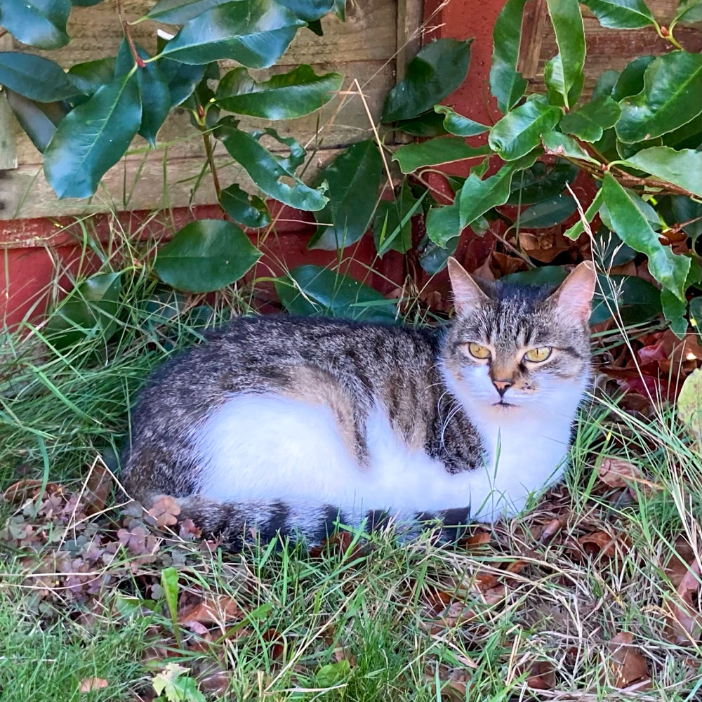 Pops likes going outside but doesn’t venture too far, he usually comes back when I call him and shake a packet of treats.
