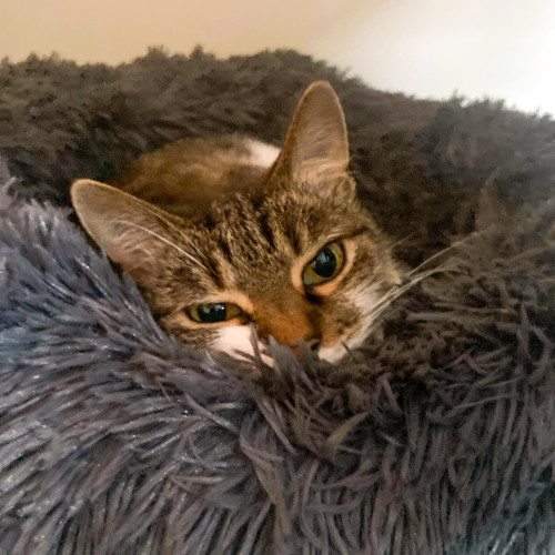 "Pops has been with us for nearly 3 months now, it’s hard to imagine life without him. He’s slowly starting to grow in confidence, he’s always happy to be stroked and doesn’t seem to mind us being noisy. We are all spending a little time with him everyday so he knows we’re friendly. My boys love him, they both have to stroke Pops before leaving for school.